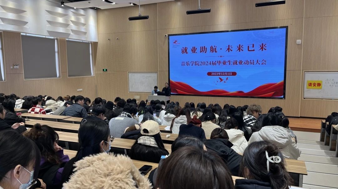 為深入貫徹黨中央、國務(wù)院關(guān)于高校畢業(yè)生就業(yè)工作的決策部署,落實(shí)就業(yè)專項(xiàng)行動(dòng),穩(wěn)步推進(jìn)學(xué)院就業(yè)工作,促進(jìn)畢業(yè)生高質(zhì)量就業(yè)。12月1日,音樂學(xué)院2024屆畢業(yè)生就業(yè)動(dòng)員大會(huì)在階梯二召開。2024屆全體畢業(yè)生參加,學(xué)院黨總支副書記劉夢(mèng)偉主持會(huì)議。