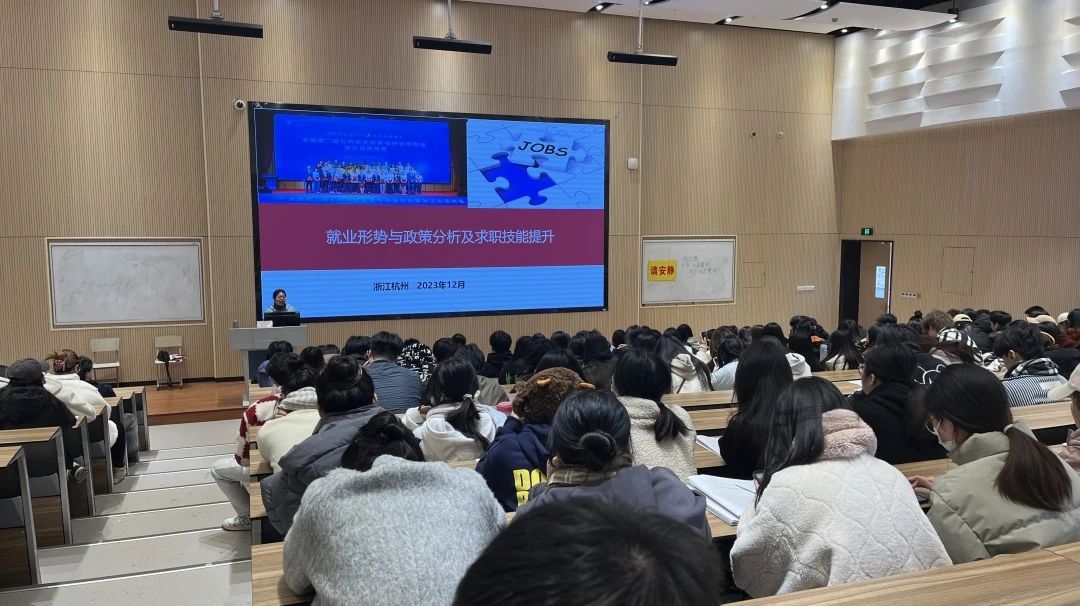 緊接著,學院邀請了來自杭州市就業(yè)管理服務中心人力資源處的三級調研員郭冰清作“就業(yè)形勢與政策分析及求職技能提升”主題講座。她結合20多年公共就業(yè)服務職業(yè)指導的經驗,從當前就業(yè)形勢、大學生慢就業(yè)的成因,以及面試中的注意事項等求職技巧,進行了認真的剖析,系統(tǒng)總結了職業(yè)發(fā)展需要的能力,鼓勵同學們認清當前就業(yè)形勢,樹立先就業(yè)后擇業(yè)理念,防止慢就業(yè)、懶就業(yè)的現(xiàn)象發(fā)生。
