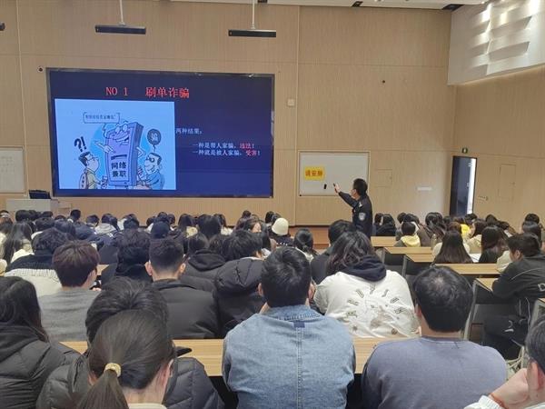 沈警官從網(wǎng)絡(luò)詐騙、網(wǎng)絡(luò)刷單、網(wǎng)絡(luò)貸款、網(wǎng)絡(luò)賭博(交友)幾個(gè)方面,結(jié)合相關(guān)的案例進(jìn)行分享,并對如何預(yù)防刷單返利、網(wǎng)絡(luò)虛假貸款、兼職招聘等校園常見詐騙手段以通俗易懂、喜聞樂見的方式向同學(xué)們開展了細(xì)致講解,提醒大家要時(shí)刻保護(hù)好個(gè)人信息、不貪小便宜,不給騙子任何可乘之機(jī)。學(xué)生們紛紛表示在新學(xué)期將不斷加強(qiáng)學(xué)習(xí),提高詐騙防范能力,不落詐騙圈套,不讓電信詐騙、網(wǎng)絡(luò)騙子有機(jī)可乘。