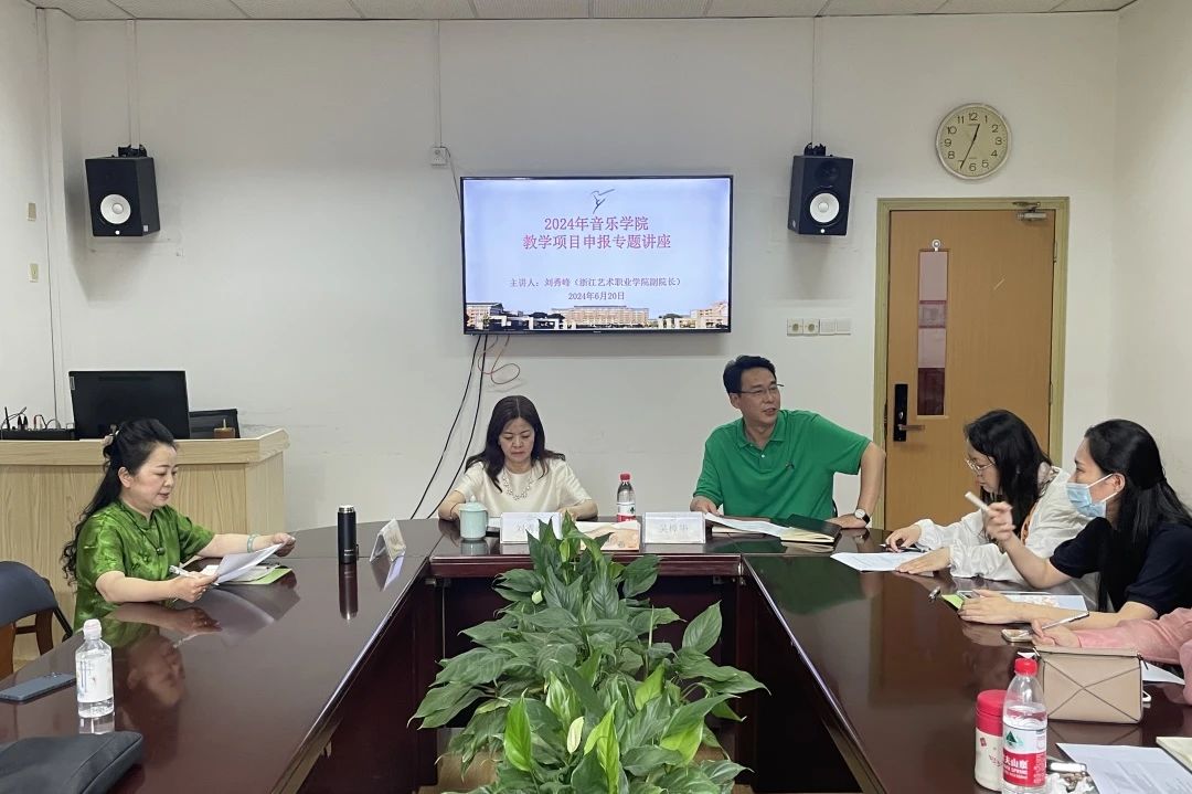 同時(shí),為了提升音樂學(xué)院本次“三百計(jì)劃”工作的項(xiàng)目申報(bào)質(zhì)量,于2024年6月20日中午在音樂學(xué)院會(huì)議室舉辦了“教學(xué)項(xiàng)目”申報(bào)專題講座。本次講座邀請了浙江藝術(shù)職業(yè)學(xué)院副校長劉秀峰主講,音樂學(xué)院部分教師以及各申報(bào)項(xiàng)目負(fù)責(zé)人參加了此次講座,講座由音樂學(xué)院副院長章蔓麗主持。