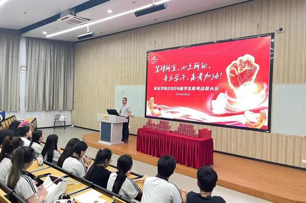 6月6日中午,音樂學(xué)院舉行了“音樂學(xué)院2024屆學(xué)生高考動員大會”,為考生們加油鼓勁,振其士氣,篤其信念。音樂學(xué)院黨總支副書記劉夢偉主持,附中教研室主任段廉、音樂劇和現(xiàn)代音樂教研室主任錢思舒,音樂學(xué)院輔導(dǎo)員張婧琦,高三班主任鄭難力、鮑燊超及高三年級全體學(xué)生參加本次會議。