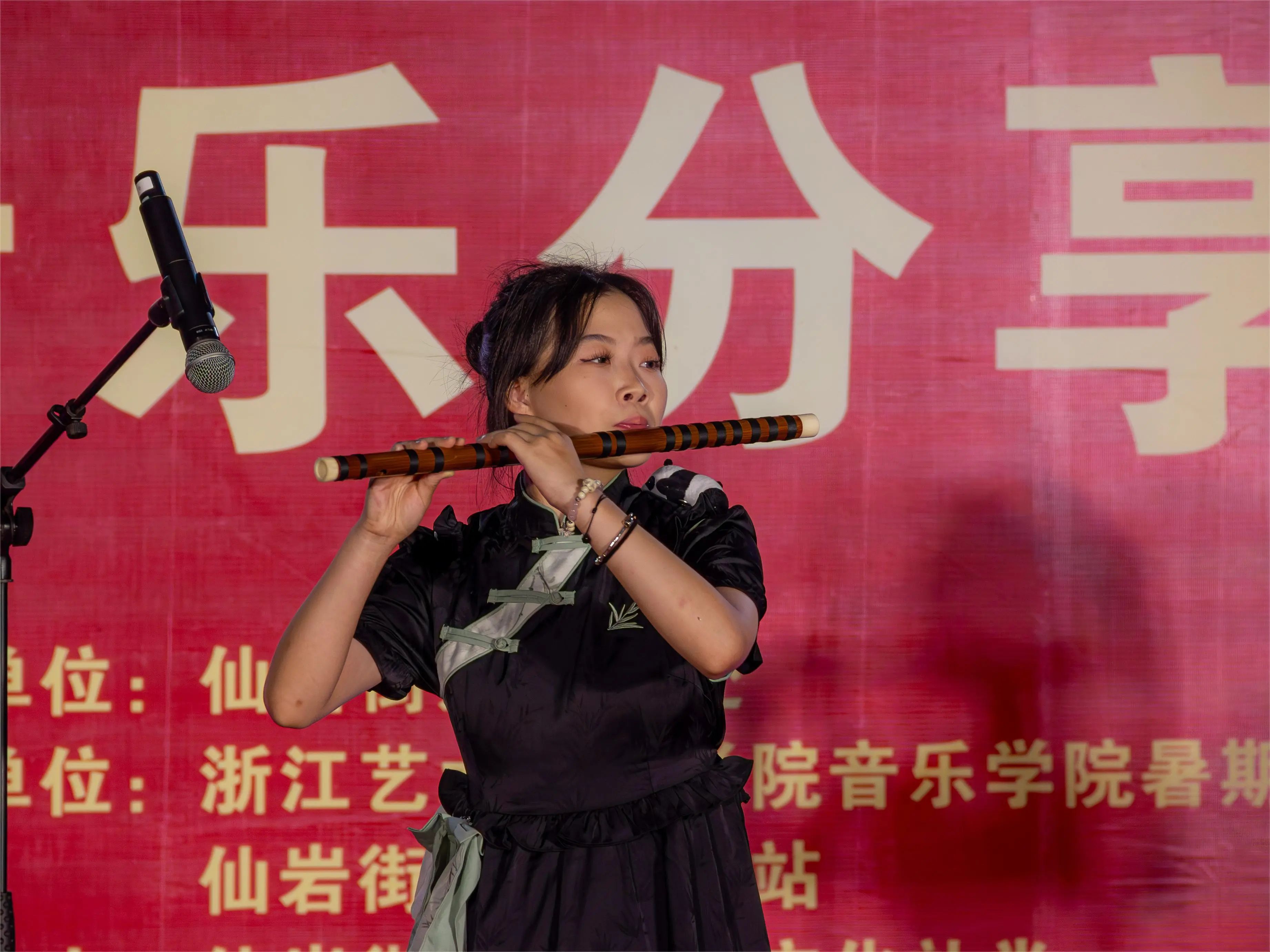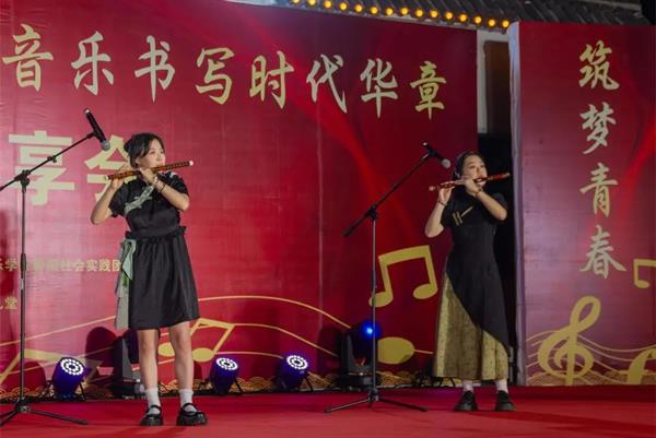 當(dāng)天晚上,實踐演藝團(tuán)在巖二村共富工坊舞臺上,正式開啟了溫州站的鄉(xiāng)村文藝首演,表演隊伍的師生們開始享受舞臺,一展風(fēng)采。