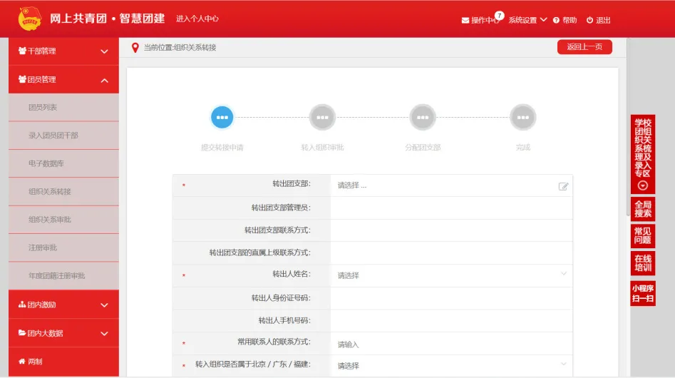 在確定好團籍檔案材料齊全后,可開始以下操作: