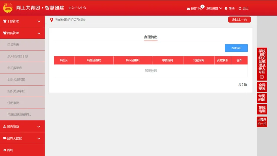 提交申請后,就可以在“我的組織關系轉接歷史”中看到處理狀態(tài),經本支部管理員通過轉出審批后,等待轉入團組織管理員同意轉入審批,即可完成轉入。審核需要一定時間,審核過程請耐心等待哦!