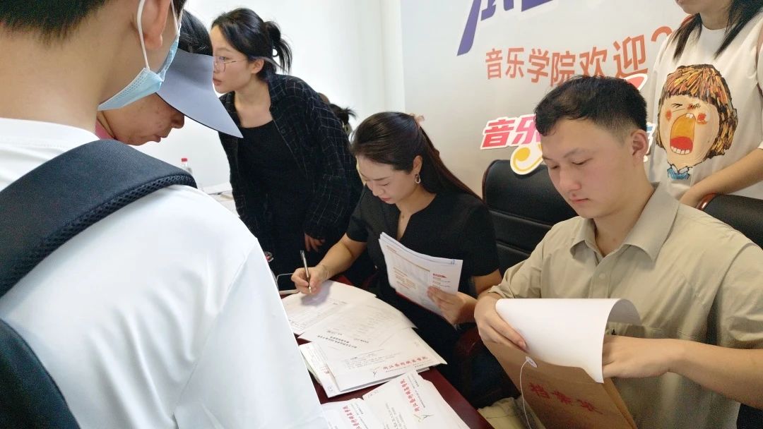 “請核對”,一句貼心的提醒,增進師生的了解。學生們陸續(xù)在報到點辦理登記注冊手續(xù)。班主任解答各種疑問,確保每位新生都能順利完成入學手續(xù),正式成為音樂學院的一份子。