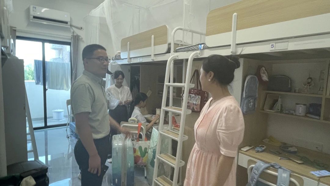 下午,學院領導與新生輔導員共同走進新生寢室,詢問新生的入住情況,鼓勵學生要合理安排生活與學習時間,與室友友好相處,度過愉快的校園生活。